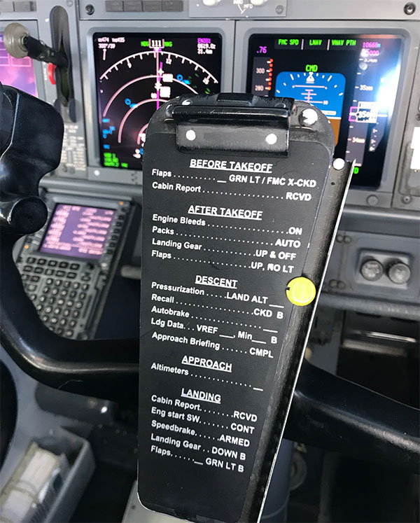 So nutze ich diese z.B. vor jedem Start und vor jeder Landung konsequent. So bin ich mir auch vor jedem Start und vor jeder Landung 100% sicher, nichts vergessen zu haben. Das Fahrwerk ist draußen und eingerastet, die Klappen korrekt gesetzt, der Motor eingestellt und die Geschwindigkeit richtig eingehalten. Zudem habe ich mich vorbereitet und weiß genau, in welcher Phase des Fluges ich mich befinde.